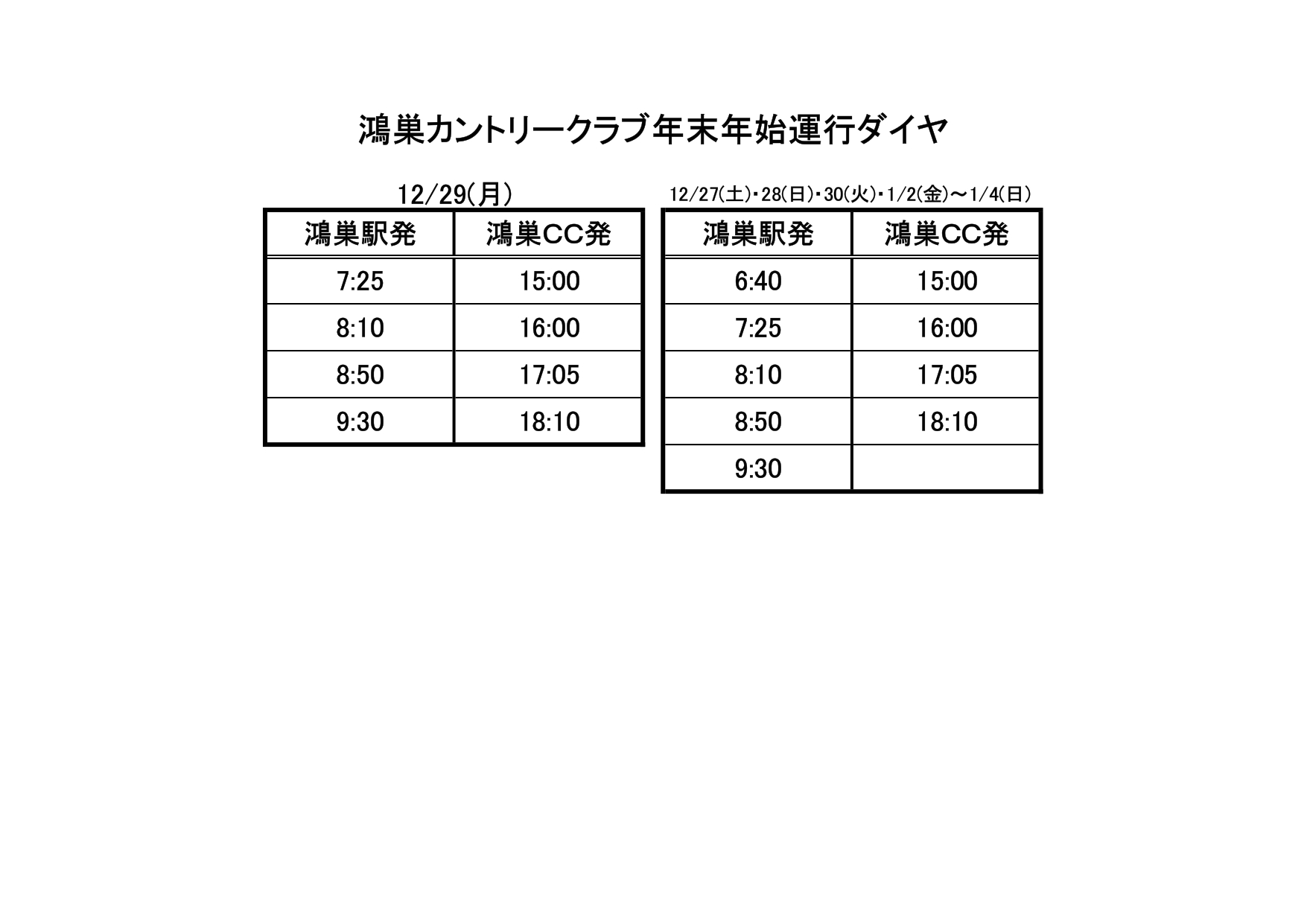 年末年始(12月27日~1月4日)クラブバス運行時間のお知らせです。クラブバスご利用のお客様はこちらをご確認ください。皆様のご来場を心よりお待ち申し上げております。