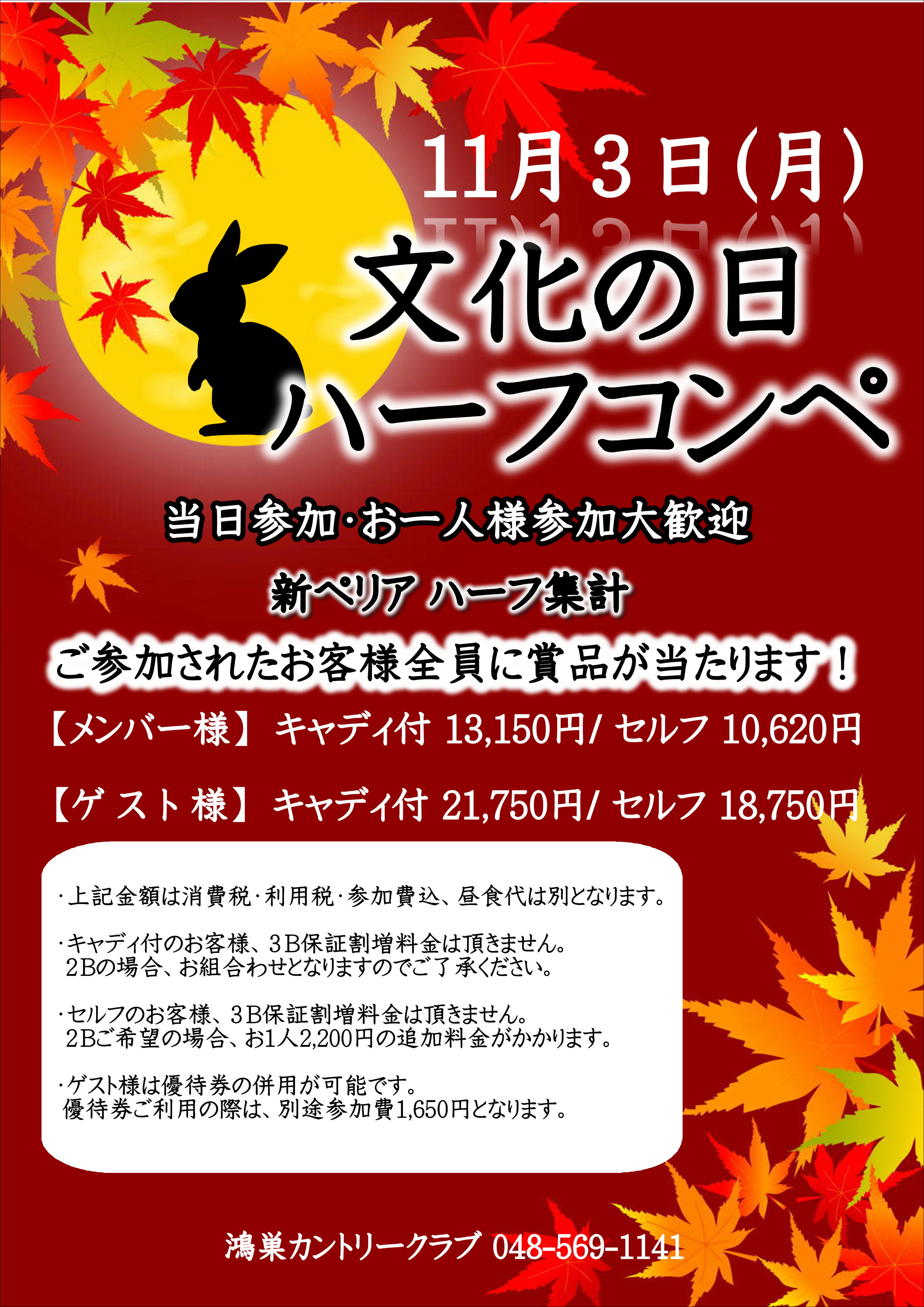 | 10月31日(金) | ハロウィンハーフコンペ | 鴻巣カントリークラブ | |
