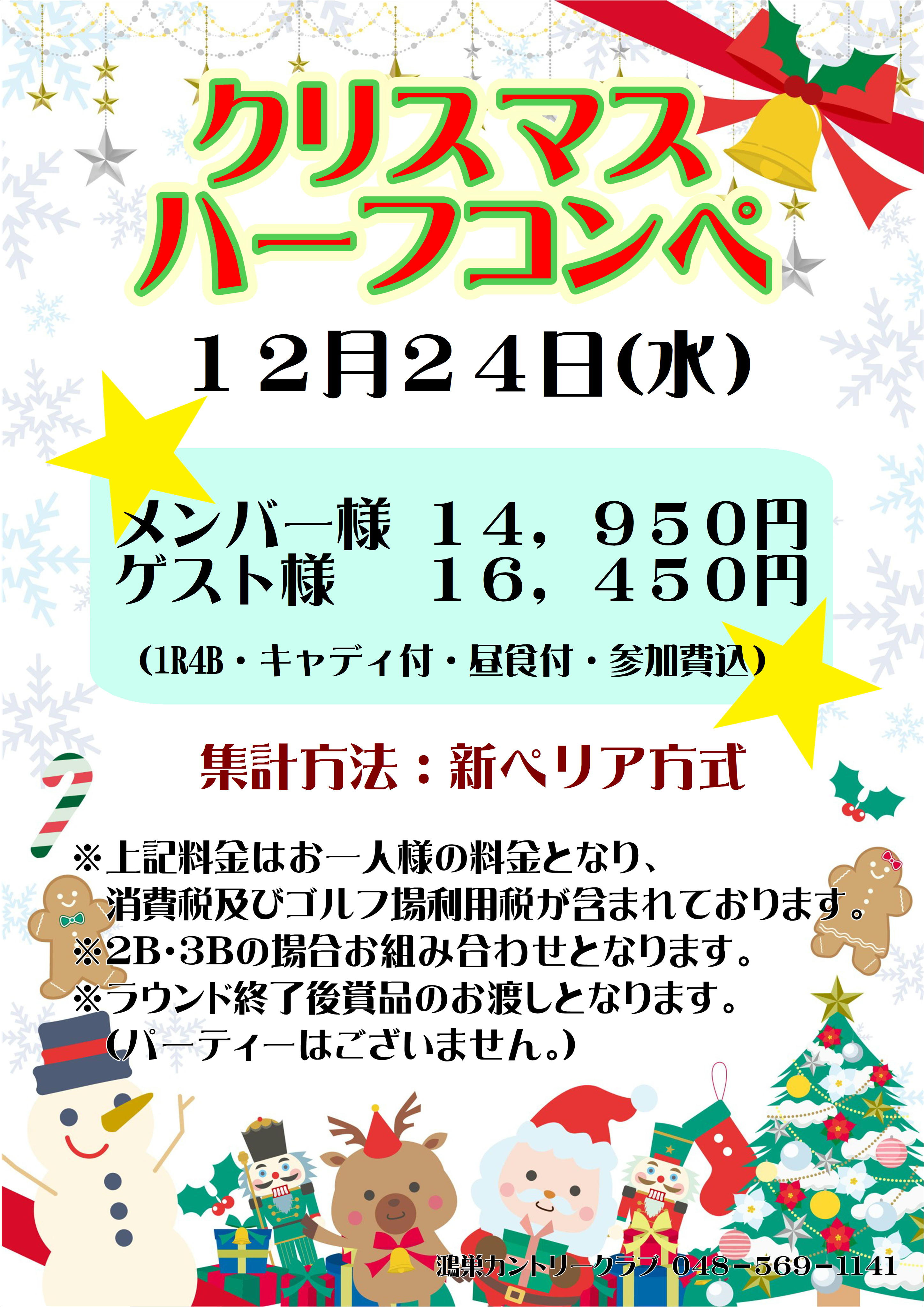 | 12月24日(水) | クリスマスハーフコンペ | 鴻巣カントリークラブ |