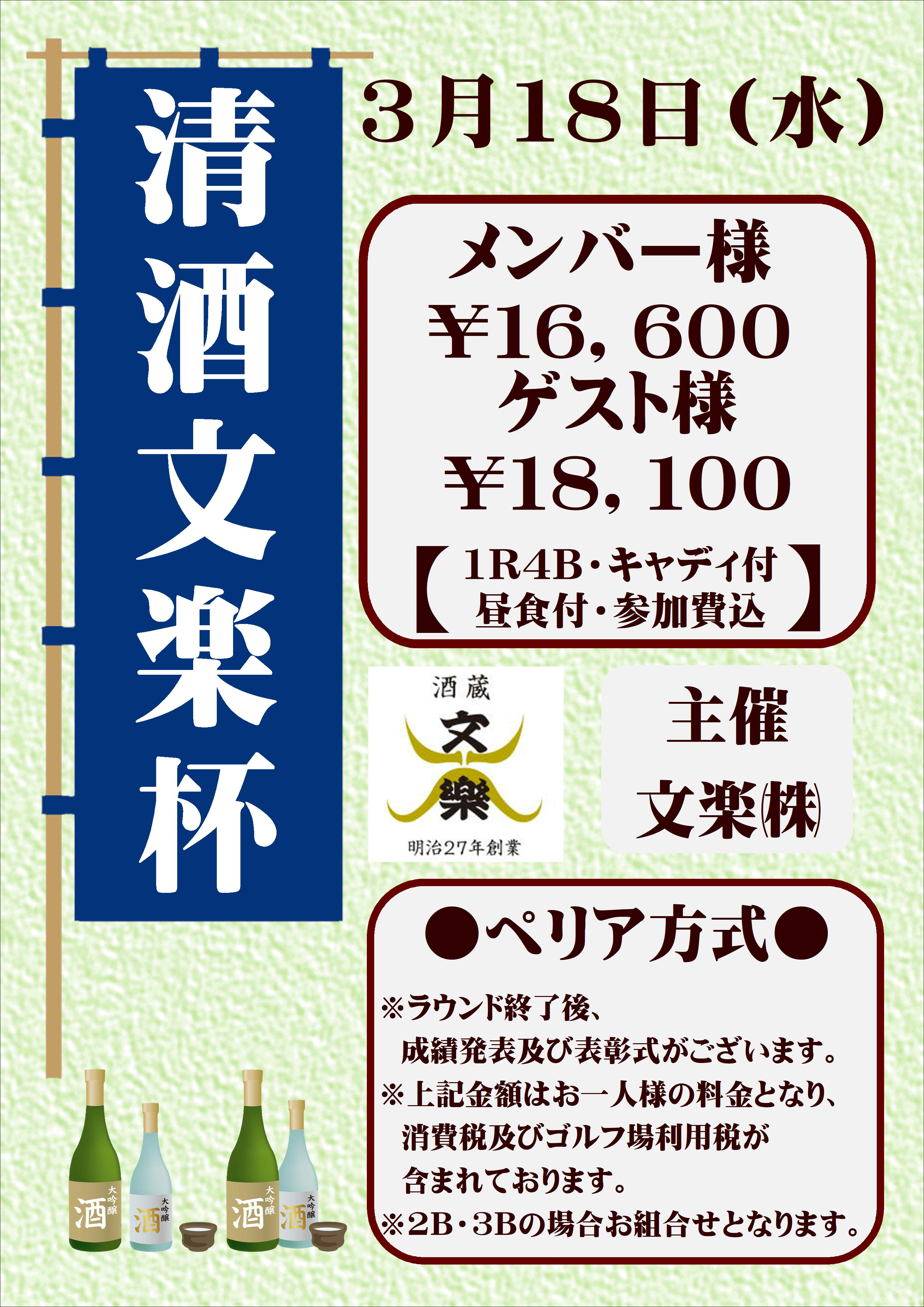 | 3月18日(水) | 清酒文楽杯 | ㈱文楽 |